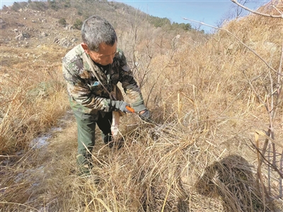 王尔玺正在清理森林防火隔离带 王伟摄