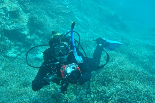 她在海底亲手培育的珊瑚。